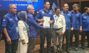 Isrullah dan Usman tiba di kantor KPU Luwu Timur tepat pukul 15.20 wita didampingi ketua dann sekretaris partai pengusung, Selasa (27/08/2024).