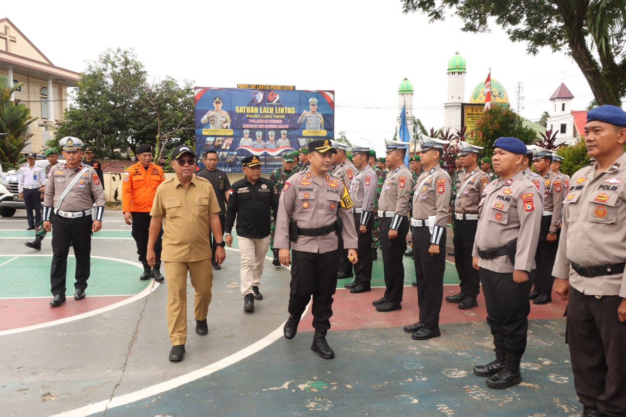 Dalam amanatnya, Kapolres Luwu Timur, AKBP Zulkarnain, membacakan pesan serentak dari Kapolri yang menekankan pentingnya kesiapan dalam pengamanan Nataru.