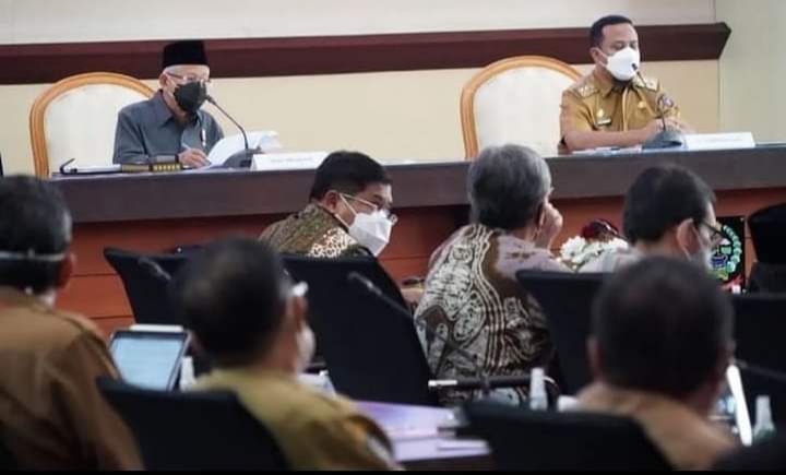 Rapat yang dipimpin Wakil Presiden (Wapres) RI, K.H. Ma’ruf Amin berlangsung di Ruang Rapat Pimpinan Kantor Gubernur Sulawesi Selatan, Makassar, Senin (31/01/2022).
