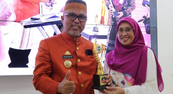 Luwu Timur — Bupati Luwu Timur (Lutim), H. Budiman didampingi Ketua TP PKK Lutim, Hj. Sufriaty, Sekretaris Daerah (Sekda), H. Bahri Suli,